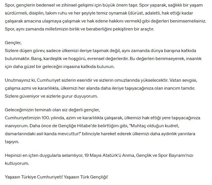 19 Mayıs Gençlik ve Spor Bayramı kutlu olsun! Atatürk yaşasaydı Türk Gençliğine ne söylerdi? Yapay zeka ile kurgulanan bu özel mesajı ve bayramın anlamını keşfedin.